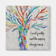 This decorative magnet features a rainbow-colored mosaic tree and an inspiring quote.