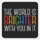 The world is brighter with you in it. Be a positive force on the planet with this happiness motivational quote for a friend with depression. Beautiful LGBTQ gay pride inclusivity sticker. Share this motivational quotation that encourages and lifts spirits with its affirmations. Perfect for a psychologist with depressed mental health patients or someone who has suicidal thoughts.