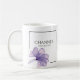 The mug features the powerful quote "Channel Your Best Self," elegantly centered and framed by a delicate, thin line border, creating a minimalistic and sophisticated design. A large, watercolor violet flower blooms toward the center from the bottom corner, paying homage to the inspirational message and adding a touch of artistic beauty.