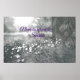 Inspirational Quote Never be Afraid to Sparkle Posters. Inspirational black and white quote poster with nature scene (flowers in field, sunbeams, trees), featuring the quote/saying 'Never be afraid to sparkle' in purple font/text.