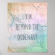 This inspirational quote typography poster is in a shabby chic style with text on peeling paint cracked stucco design with soft pastel colors and the words look beyond the ordinary. Original photography copyright Ann Powell all rights reserved.