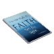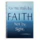 This notebook is a gentle reminder that we don't have to see what's coming to keep moving forward. The background is an abstract painting of a calm ocean in shades of blue. The text "For we walk by faith, not by sight," from II Corinthians 5:7 is artistically written across the image.
