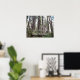 Decorate a living space with this poster print that features the photographic image of a sunlit forest filled with tall, evergreen trees along with the inspirational words of the Serenity Prayer. Select your poster size and other options as desired.