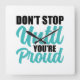 Fuel your ambition with this powerful motivational quote. "Don't Stop Until You're Proud" is a declaration of determination and a reminder to keep pushing toward your goals. The dynamic mix of bold and script fonts makes this a stylish and impactful design for anyone dedicated to success and personal achievement.