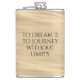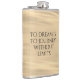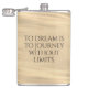 Add a touch of inspiration to your favorite drink with this hip flask, which features the uplifting words "To dream is to journey without limits" on golden waters!