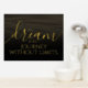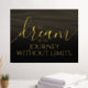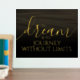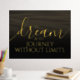 Add a touch of inspiration to your walls with this foil print, which features the uplifting words "To dream is to journey without limits" on sepia-toned waters (or shifting sands), fading to black!