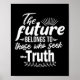 An inspirational quote about truth displayed in an artistic typographical layout in white lettering on a pure black background which you can customize to the color of your choice to match any decor.
