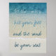 Beautiful contemporary teal turquoise blue ocean surf waves and beach shore. With fun 'LET THE WAVES HIT YOUR FEET, AND THE SAND BE YOUR SEAT' text quote.