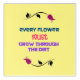Typography design with an inspirational motivational quote which says " every flower must grow through the dirt. Set on a pale yellow background. A red rose flower illustration frames the top and bottom of the text.