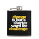 Add a touch of inspiration and motivation to your favorite drink with this flask, which features the words "change is but the shorter word for challenge."