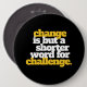 Add a touch of inspiration and motivation to your attire with this button, which features the words "change is but the shorter word for challenge."