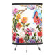 A Strong and Powerful word INSPIRED is designed on this Tripod Lamp - Beautiful Whimsical Flowers, Blossoms and Butterflies, created with dog paw prints creatively watercolor painted by the designer. Colorful, delicate, yet vibrant and fun. You will never see anything like these prints as they are exclusive to the designer, so be unique and different and dazzle your friends and family with this gorgeous design featuring a Red Bird House with Blue Roof