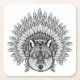 Inspired Wolf In Feathered War Bonnet Square Paper Coaster