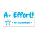 This fun rubber stamp design features the positive message "A+ Effort!" and a customized teacher's, educator's or tutor's name. It also features a decorative star shape icon. It could be used by a teacher, educator, or tutor when marking assignments, to acknowledge that a student has done well.