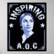 A portrait drawing of Alexandria Ocasio Cortez in blue, with, "Inspiring AOC" text. T-shirts, sweats, novelty gift wares.
