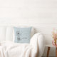 Inspiring graphic dandelion "Wish" on dusty baby sky blue throw pillow.