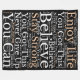 Positive vibes for your home with this Word art pattern of inspiring and encouraging phrases such as Enjoy Life, you Got This, You Can, Believe, Stay Strong, Never Give Up, in white and brown typography against a black background.