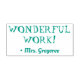This fun rubber stamp design features the encouraging message "WONDERFUL WORK!" and a personalized teacher's, educator's or tutor's name. It could be used by a teacher, educator, or tutor when marking assignments, to acknowledge that the student has done well.