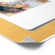 The material we chose was heavyweight paper. If you choose this it won't stand on its own so we purchased a plastic frame from walmart. It was a hit on our wedding. Everyone loved it. It looked more expensive than what we paid for. Loved it! Image was clear & sharp. Loved it!