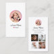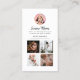 This minimal modern, trendy Instagram photo business calling card design features your social media handle in a modern handwritten script as well as the Instagram logo. More space for your name, custom description, 4 social media posts in a photo collage, and all other contact information on the back.