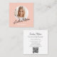 This trendy Instagram photo business calling card design features your social media handle in a modern hand written script as well as the Instagram logo on a blush pink backdrop. More space for your name, custom description, qr code and all other contact information on the back.