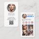 Promote your brand online with these modern, elegant business cards. Featuring qr code, profile image, your name and title on a white background on the front. The reverse side features your profile image, instagram follow me icon, your instagram handle, name, description, tag line and 4 photos. Design on the back is created to look like your social media profile. Font, text size, colors can be customized.