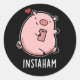 Instaham Funny Social Media Pig Pun Dark BG Classic Round Sticker