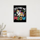 This delightful graphic features a cheerful, multi-colored cartoon cat with patches of green, yellow, orange, blue, and purple fur, depicted with an ecstatic, open-mouthed expression. Surrounding the happy cat are scattered colorful paw prints and vibrant sparkle accents. The bold text, "YOU HAD ME AT MEOW," is rendered in lively, contrasting colors, humorously capturing the irresistible appeal of a cat's first vocalization. The design is set against a solid black background. Digital download for personal use only.