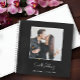 Guests can sign their best wishes, even add instant photos in this elegant spiral bound guest book featuring your favorite photo on the front with an inside border of any color, we show white, and any background color, we show black. Your name, date and any other info in chic lettering on the front. CHOOSE THE STYLE PAGES YOU WANT INSIDE!