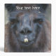 Very intense looking cute black llama face close up. Animal photography by Susan.