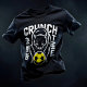 Embrace the competitive spirit with this striking "Crunch Time" soccer cat design. Featuring a powerful black cat with piercing eyes, poised and ready to strike a yellow soccer ball, this design embodies focus and determination. The distressed