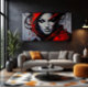 A striking work of art! This female portrait combines facial realism with explosive red and black paint splashes. Penetrating eyes and bold features create a mysterious and elegant atmosphere. Perfect for high-end decor, studios, and lovers of urban and contemporary art.