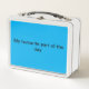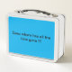 This is a standard metal lunchbox that appears to work just fine. We designed this box ourselves with an uploaded photo and custom text on the front and back. It looks absolutely beautiful except the front of the lunchbox is not centered like it shows in the photo. The print borders don't align with the inset flat part of the box where the preview photo online showed it perfectly centered in there. The back looks nice and centered though.