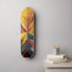 A vibrant array of bold, geometric shapes converges at the center, forming a symmetrical and colorful composition. The piece uses a variety of hues, ranging from warm yellows and oranges to cool blues and purples.