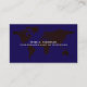 A black map of the world on a simple and elegant dark blue business card... perfect for a travel agent or any other international relations professional.