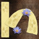 Beautiful scarf in muted shades of yellow with symbols of different religions and a labyrinth in the background. Suitable for an interfaith minister to use as a ceremonial stole.