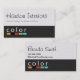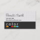 A color box bar with the word color over it is the base image for this design. The bottom half is a grey color with a texture applied and the top is a white with a grey fabric looking texture applied. This is a very fun, modern and professional looking business card that can work for many professions but especially for interior designers.