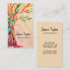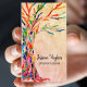 This unique business card is decorated with a mosaic Tree of Life design in rainbow colors on a soft coral and beige background.