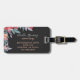 Hand painted style whimsical vivid floral edged blooms on black unique luggage tags with hand written script typefaces. Hues of peach, green, blue green, and red orange.