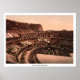 A beautiful, one-of-a-kind photochrom print of the interior of the Coliseum in Rome, Italy. The photochrom process was one of the earliest efforts at bringing color to photography. It used high quality color inks which were laid down on paper with multiple lithographic stones, creating a beautiful hand-colored rendering. An application of a varnish coat gave the print a lustrous quality and added a depth and richness often found in more modern color photographs. These factors contributed to a unique and distinct print quality. This print would make an excellent gift for a friend, family member, or co-worker, or wall hanging for your private collection. It beckons a deep appreciation and warmness of times gone by.