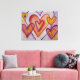 Watercolor painting of hearts interlocking with each other like love from life relationships. The colors are a soft lavender purple, pinks, red, yellows, and gold. This image is meant is a tribute to all those we love in our life. The interlocking love heart connections hold us together in joy and celebrations. It is love too for strengthening our souls for life's challenges. Personalize the heart painting wrapped canvas art print with your own text and images using the Customize It option. Make special Valentine's Day, Wedding, Engagement, Baby, or Love canvas art print gifts! Profits from this sale support the non-profit 501(c)3 DonnaBellas Angels.