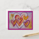 Watercolor painting of hearts interlocking with each other like love from life relationships. The colors are a soft lavender purple, pinks, red, yellows, and gold. This image is meant is a tribute to all those we love in our life. The interlocking love heart connections hold us together in joy and celebrations. It is love too for strengthening our souls for life's challenges. Personalize the hearts postcards with your own text and images using the Customize It option. Make special Valentine's Day cards, Wedding Thank You Notes, Engagement Save-the-Date, Baby Birth Announcements, or your special custom Love hearts postcards! Profits from this sale support the non-profit 501(c)3 DonnaBellas Angels.