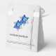 Art Deco style Favor Bags for Wedding, Anniversary or Bat Mitzvah guests. A pair of Jewish Stars looking like blue stained glass sit on a faux brushed silver base. 2 custom text fields on front + 1 on back for honoree's names, date & Thank You Message.