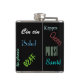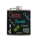 Fun flask done in black with colorful international text reading cheers. Learn how to say cheers in German, Polish, Japanese, Spanish, French, Finnish, Italian, and Czech. Personalize the name, on the front for yourself or as a fun gift idea.