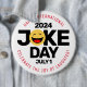Laughter is the best medicine, and what way to tickle your funny bone and celebrate humor than on July 1st (International Joke Day) with this commemorative button, which features the salutations "Happy International" and "Celebrate the Joy of Laughter" encircling the words Joke Day, with a laughing face standing in for the letter O.