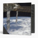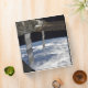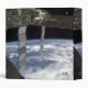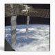 International Space Station backdropped againts a blue and white Earth featured with curvature.