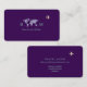 An elegant dark purple business card for a travel agent, or for any other related profession... with name, a small blue map of world and an airplane... template to add two initials and create a modern monogram.