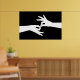 Two white hands making the ASL sign for "interpret". The hands are shown against a black background.