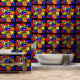 A mondrian style design, geometric and colorful, colored intersecting squares and rectangles