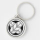 Intersecting hawk feathers with foot in circle keychain